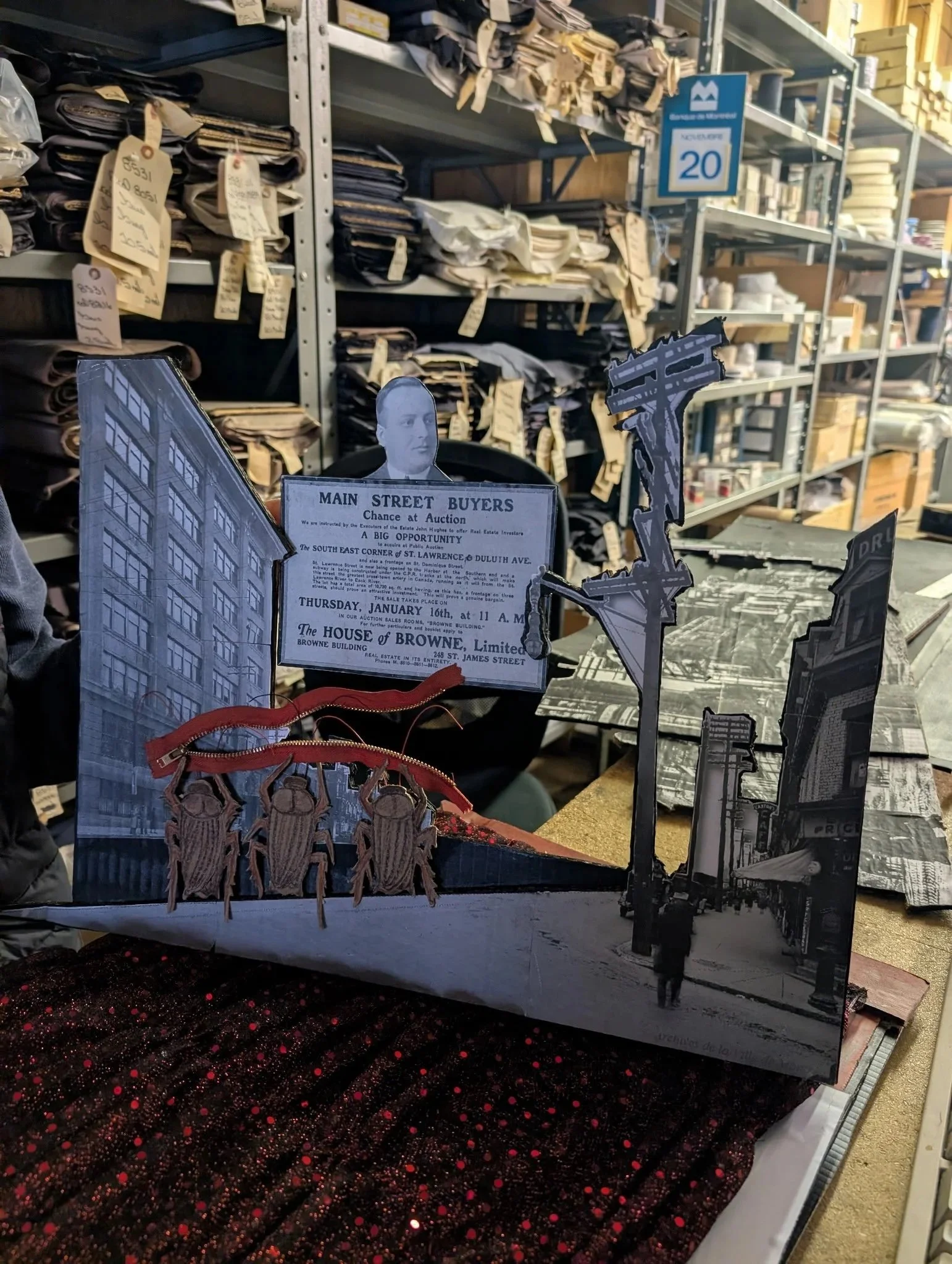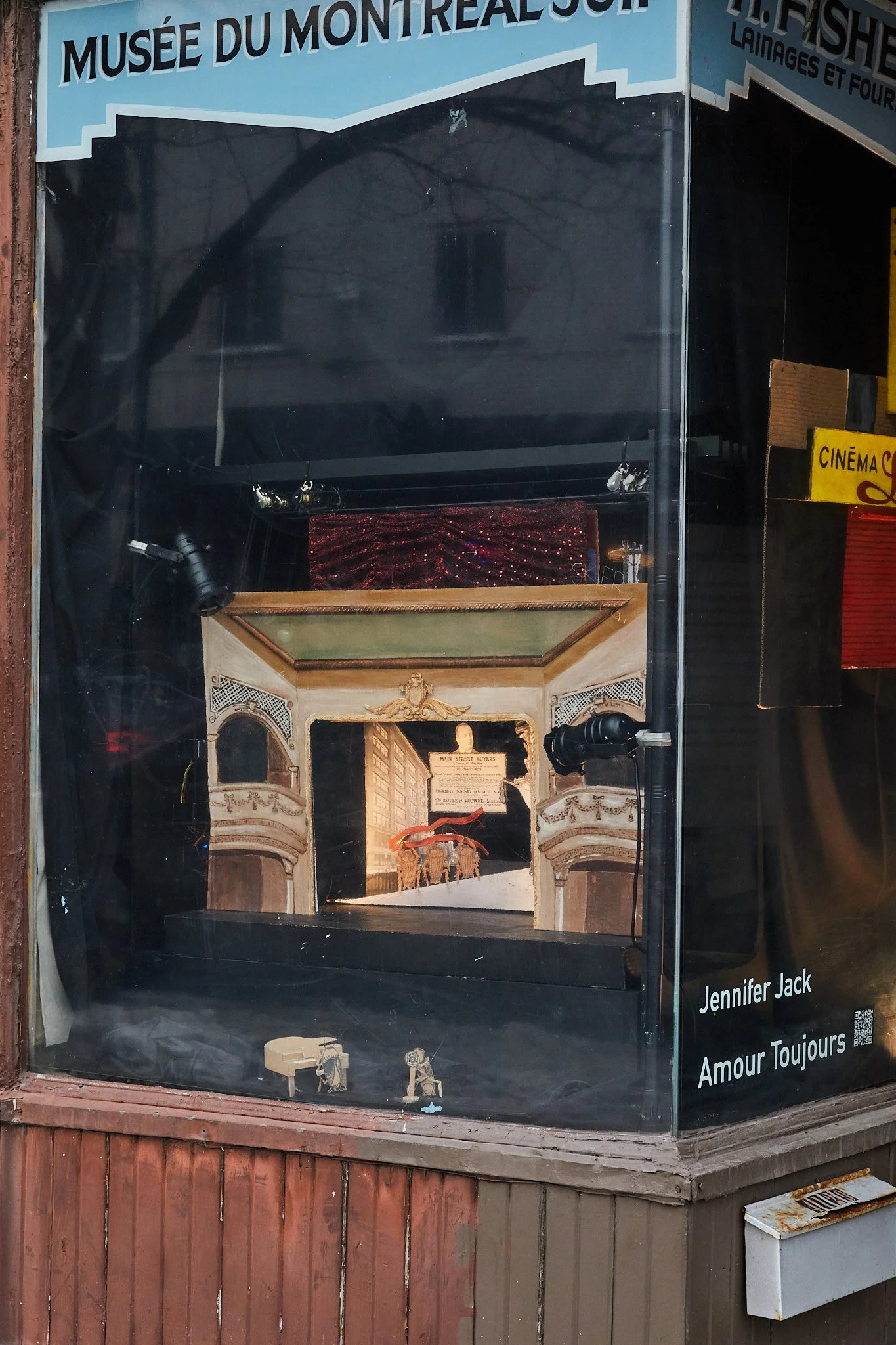 I have developed the project into an animated vitrine installation at the Museum of Jewish Montreal’s ephemeral museum in a former sewing shop, only half a block from the cinema.
